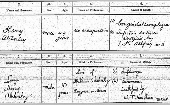 Picture credits. Extract from GRO death certificate for Elizabeth Atcherley: Image © Crown Copyright, posted in compliance with General Register Office copyright guidance. All other images: by the author.