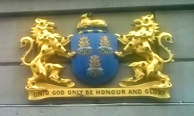 A Charter of Incorporation, which recognised the Company as a legal corporate fraternity, was received in 1438. The Company then became the first corporate body to be granted a coat of arms. (The photograph above shows a modern version of the arms, with crest, motto and lion supporters, affixed to the exterior of the Drapers’ Hall in London.)
