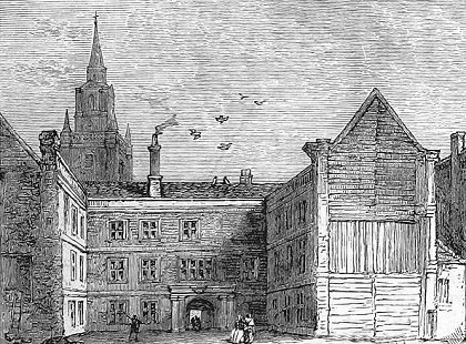 I suspect Roger was involved in both exporting and importing cloth, and buying from and selling to the domestic market in London. Blackwell Hall was probably a place often frequented by Roger, as a major source of cloth which could be sold on directly or perhaps worked on further before resale. Blackwell Hall had been acquired for the City in 1395 to serve as a market place “for sorts of wollen cloths broade and narrow, brought from all partes of this realme, there to be solde”. (The illustration here shows a later incarnation of Blackwell Hall, which burned down twice during the years following Roger Acheley’s death.) According to Christine Fox (writing in A History of Bassishaw Ward c. 1200 – c. 1600):