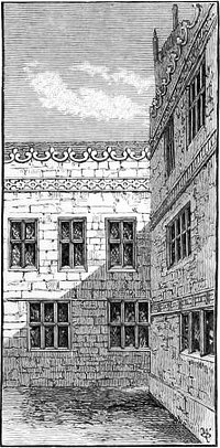 Picture credits. The arms of Charles I above the entrance to Shrewsbury School: Photo by the author. Shrewsbury School court yard, and Shrewsbury School: both drawings by Alfred Rimmer, from A History of Shrewsbury School (at Internet Archive), published 1889 and therefore out of copyright.