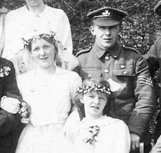 John evidently returned to duty, his entry in the British War and Victory Medals medal roll showing that when his war service ended he was a Temporary Lance Sergeant. Which explains the Sergeant’s stripes on his uniform when he attended the wedding of his sister Fanny Atcherley in 1919!